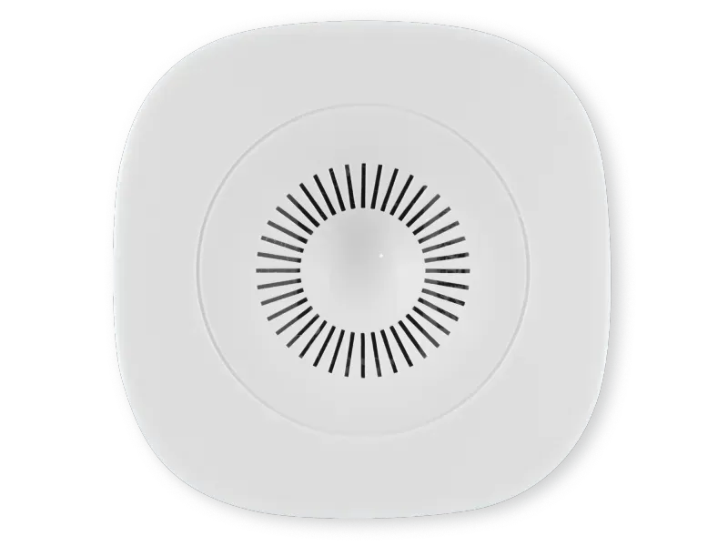 En als laatste hebben wij van Frient de luchtkwaliteit sensoren. Deze meten luchtvochtigheid, temperatuur en de VOC waarde. VOC staat dan voor Volatile Organic Compounds. Dat zijn de stoffen die vrij komen bij bijvoorbeeld het stoken van je kachel maar ook uit verf. Dan weet je in ieder geval hoe de luchtkwaliteit in huis is.