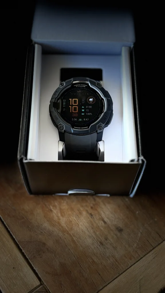 De grootste upgrade ten opzichte van de Instinct 2 is het AMOLED-scherm. En het is goed. Niet gewoon “prima voor een sporthorloge” goed — gewoon goed, punt.